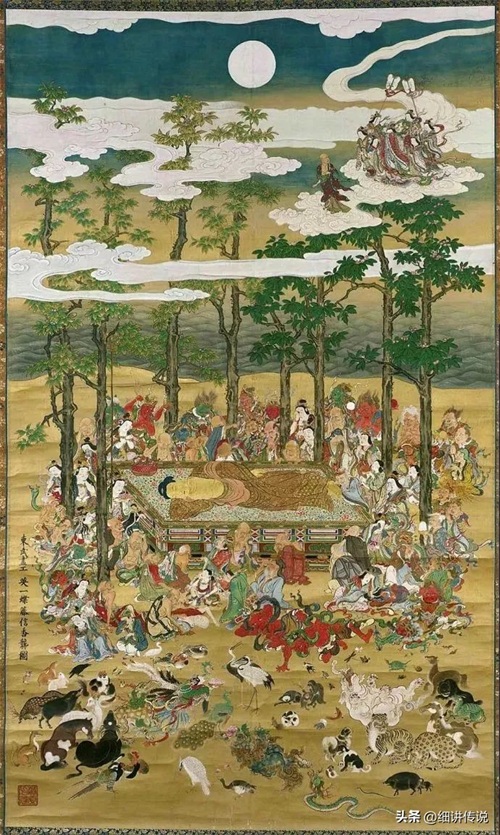 1713年江户时代 英一蝶绘 佛陀涅槃图