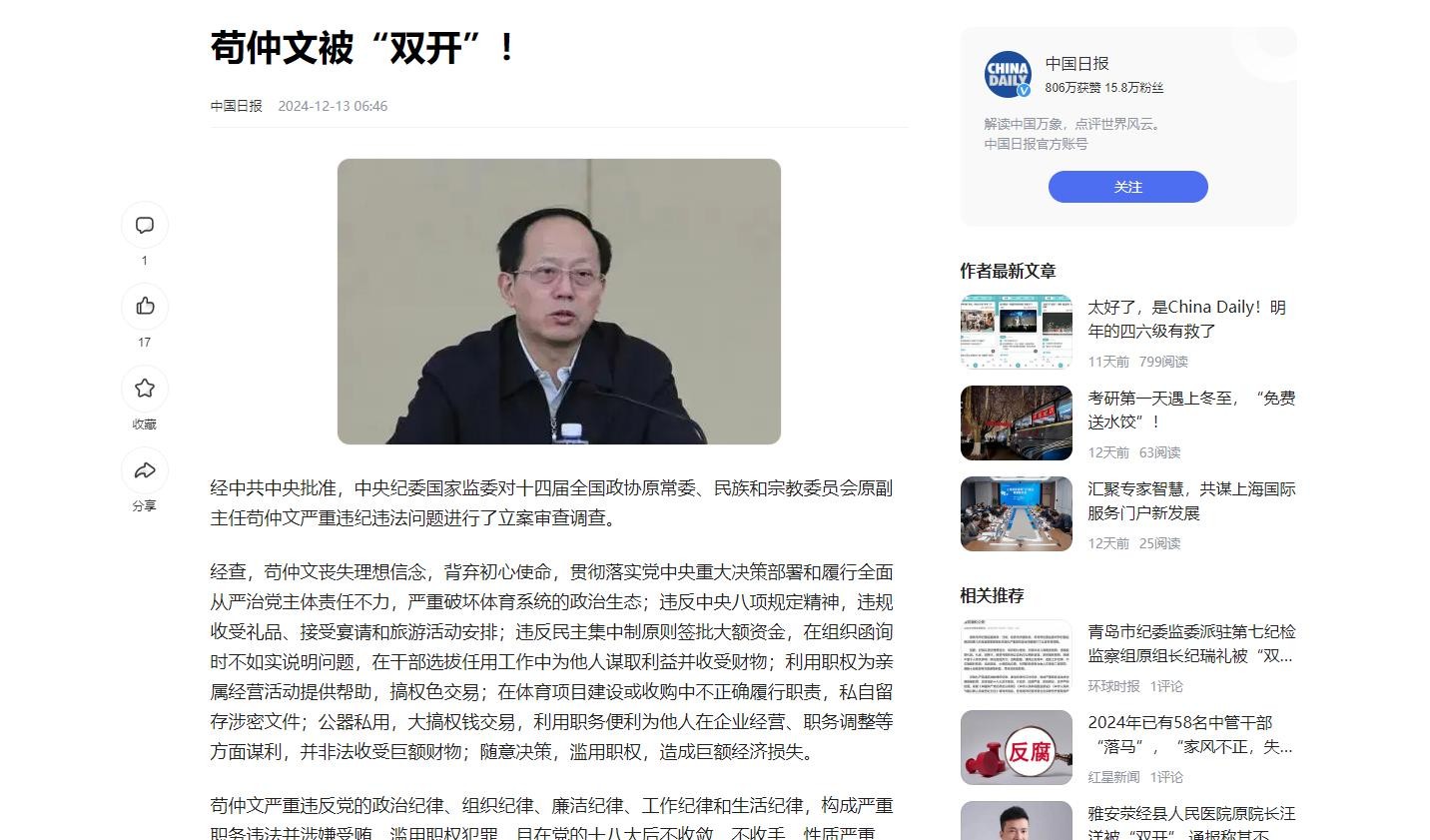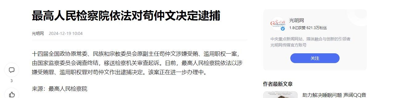好在就在2024年即将过完的时候,传来了好消息,就是苟仲文已经确认被捕。