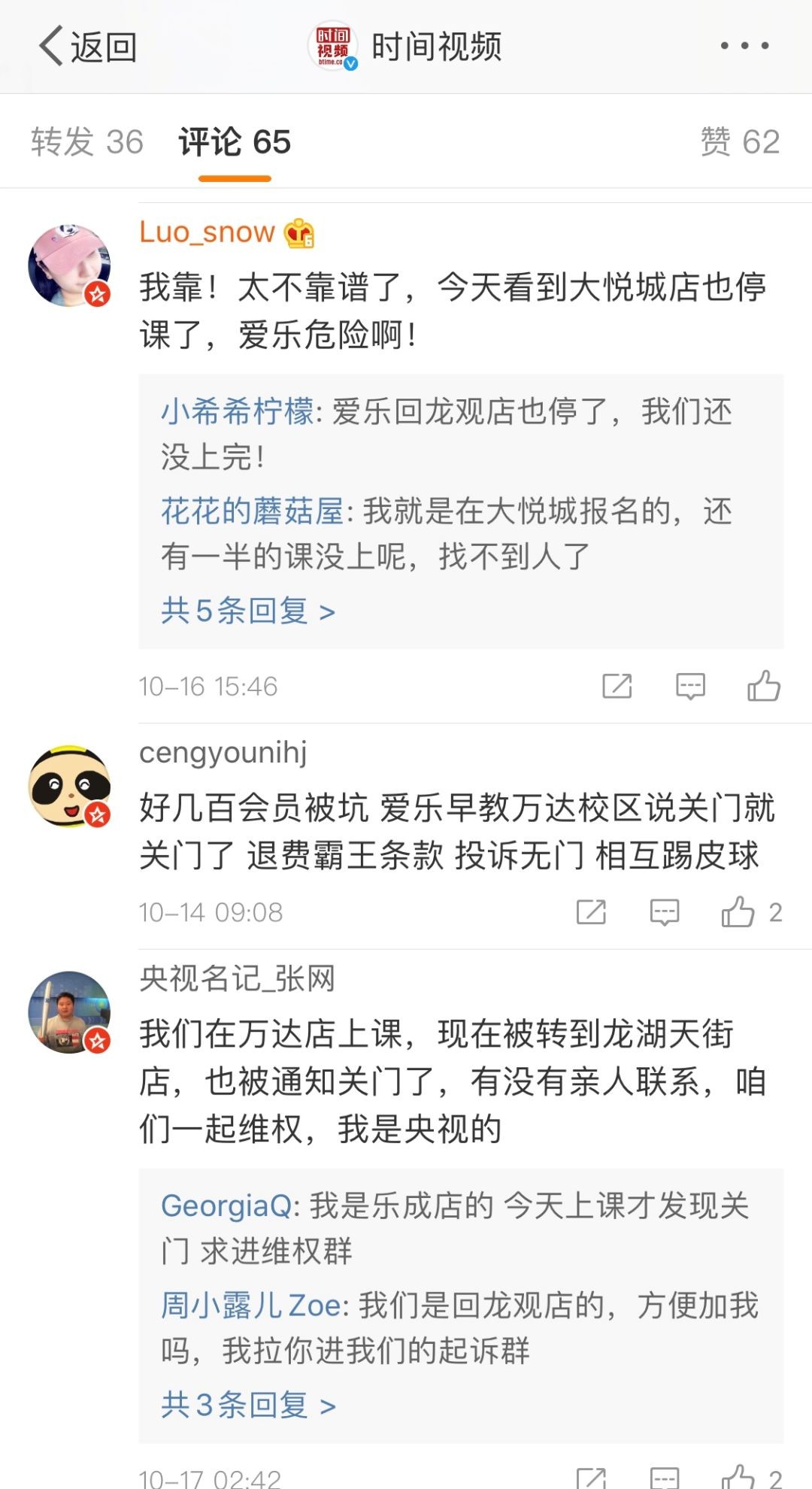 尽管爱乐乐享老板在官网作出表示要负责到底,但家长们似乎并不相信这套说辞,都在积极寻求各种途径维护自己的权益。