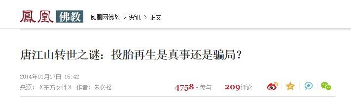 凤凰网佛教——《唐江山转世之谜:投胎再生是真事还是骗局?》