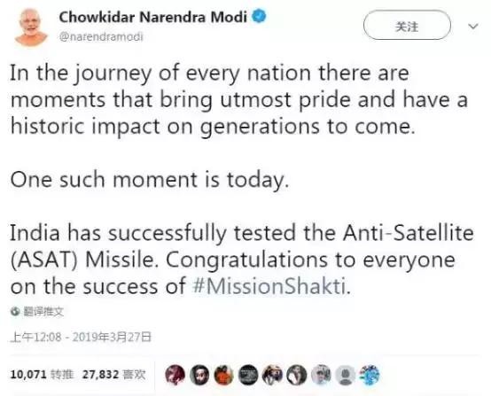 紧追中国?印度高调宣布反卫星试验成功,印军工实力不可小视