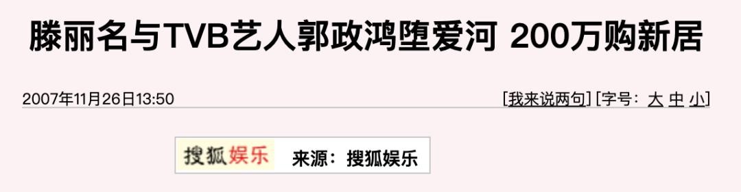 两人拍拖一年多,郭政鸿被媒体爆出早就同圈外女友结婚,而且有小孩,一气之下滕丽名与其分手。