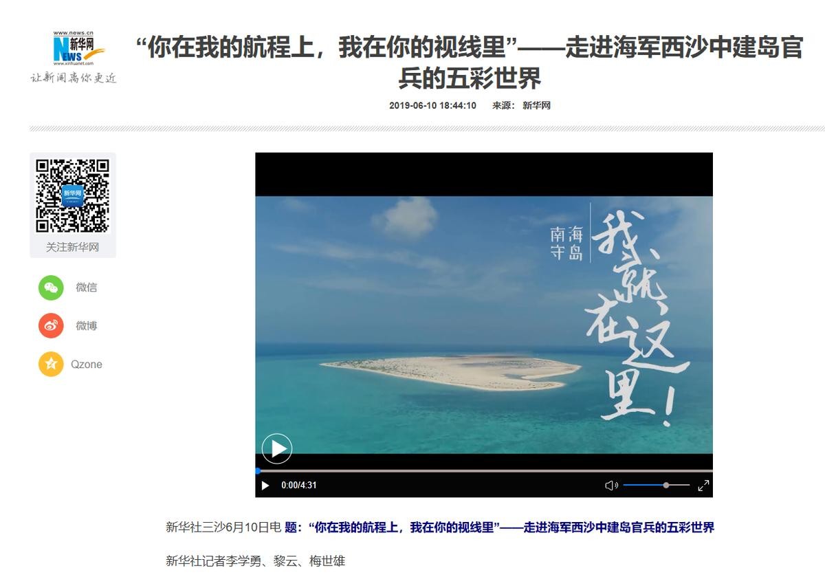 新华网2019.06.10《“你在我的航程上,我在你的视线里”——走进海军西沙中建岛官兵的五彩世界》