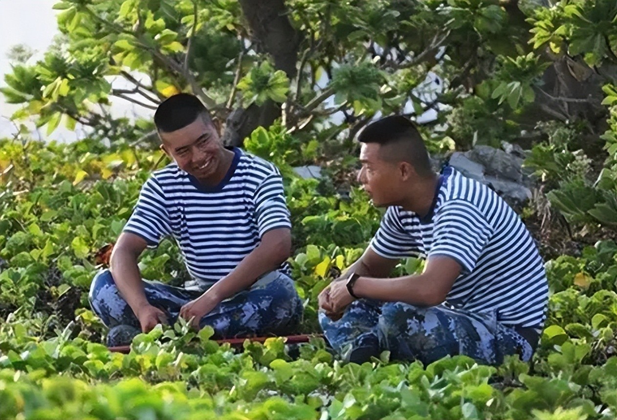 抵达中建岛的那一天,海风轻拂,阳光明媚,但岛上的条件依然艰苦。岛屿上的官兵们已经在尽力改善这片贫瘠的土地,种植了不少耐盐碱的植物。