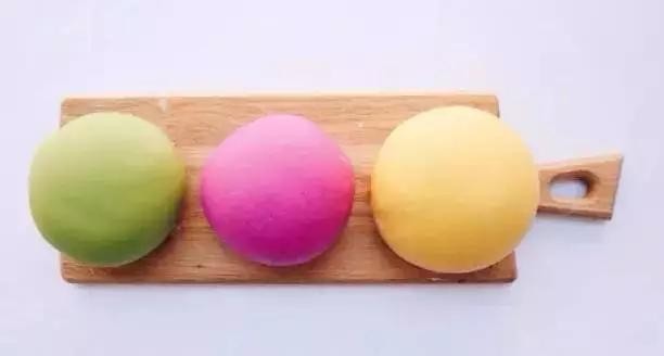 1.首先按照前面所说的方法,准备好几种纯色的面团。