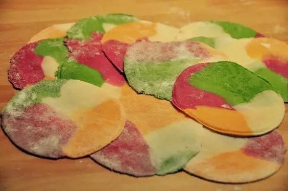 除了纯色的饺子,还有给力的彩虹色饺子呢!