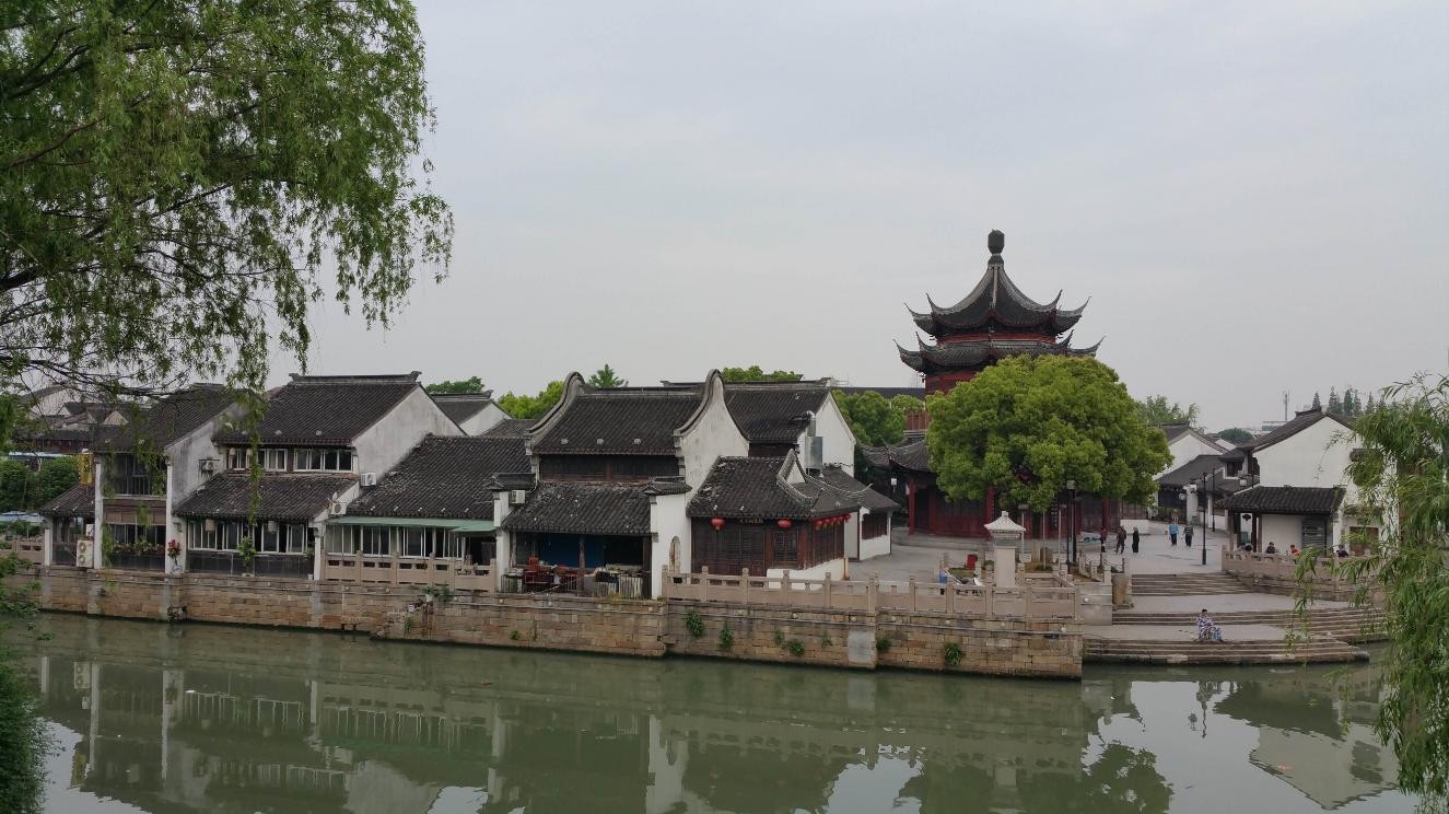 缓步迂回到街口,当还沉浸在山塘的古朴之中时,抬头就望见不远处的高楼,与这古街相映成趣。仿佛历史和现代在此交错,也别有一番风味。 山塘老街全长360米。虽仅有七里山塘的十分之一,却是山塘的精华所在,被称之为“老苏州的缩影、吴文化的窗口”。