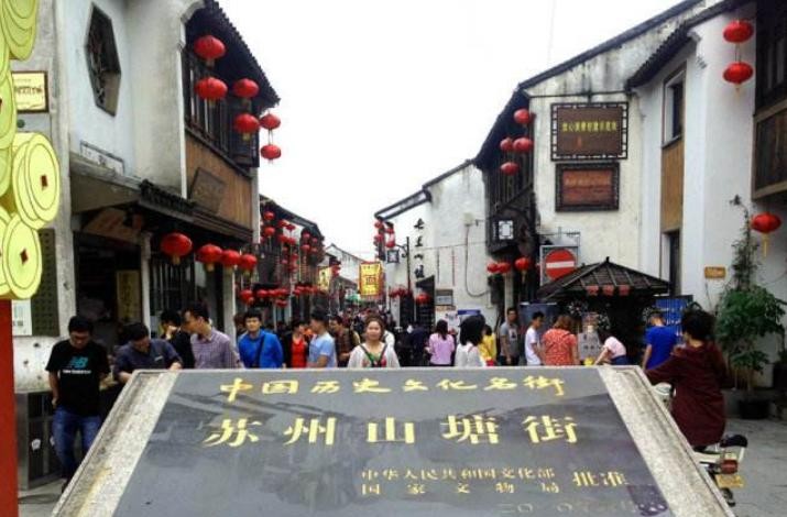 唐代诗人杜荀鹤有诗云:“君到姑苏见,人家尽枕河。古宫闲地少,水港小桥多。”在苏州众多的街巷之中,名胜山塘街,被誉为“姑苏第一名街”。步入山塘街口的一刹那,还是被古风古韵的街巷所倾倒。始建于唐代的山塘街,距今已有1100多年历史,街道呈水陆并行、河街相邻的格局,建筑精致典雅、疏朗有致,街面店肆林立,会馆集聚,再现了山塘街的盛世繁华。有民歌唱道:“上有天堂,下有苏杭。杭州有西湖,苏州有山塘。两处好地方,无限好风光。”这便是对山塘街的生动写照。