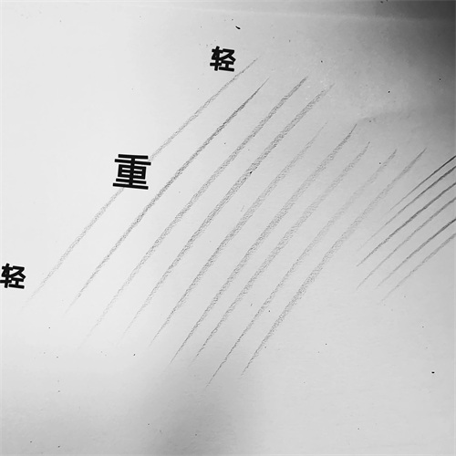为了让线条画得均匀而长,要像摆钟的运动轨迹画,在空中画圈,这样的线两头细中间粗(牙签线),注意不能画成一头粗一头细的(丁字线)那样的线条仅在特定情况使用。注意尽量保证线条之间的距离相等,且保证都是从左到右或从右到左一个方向。