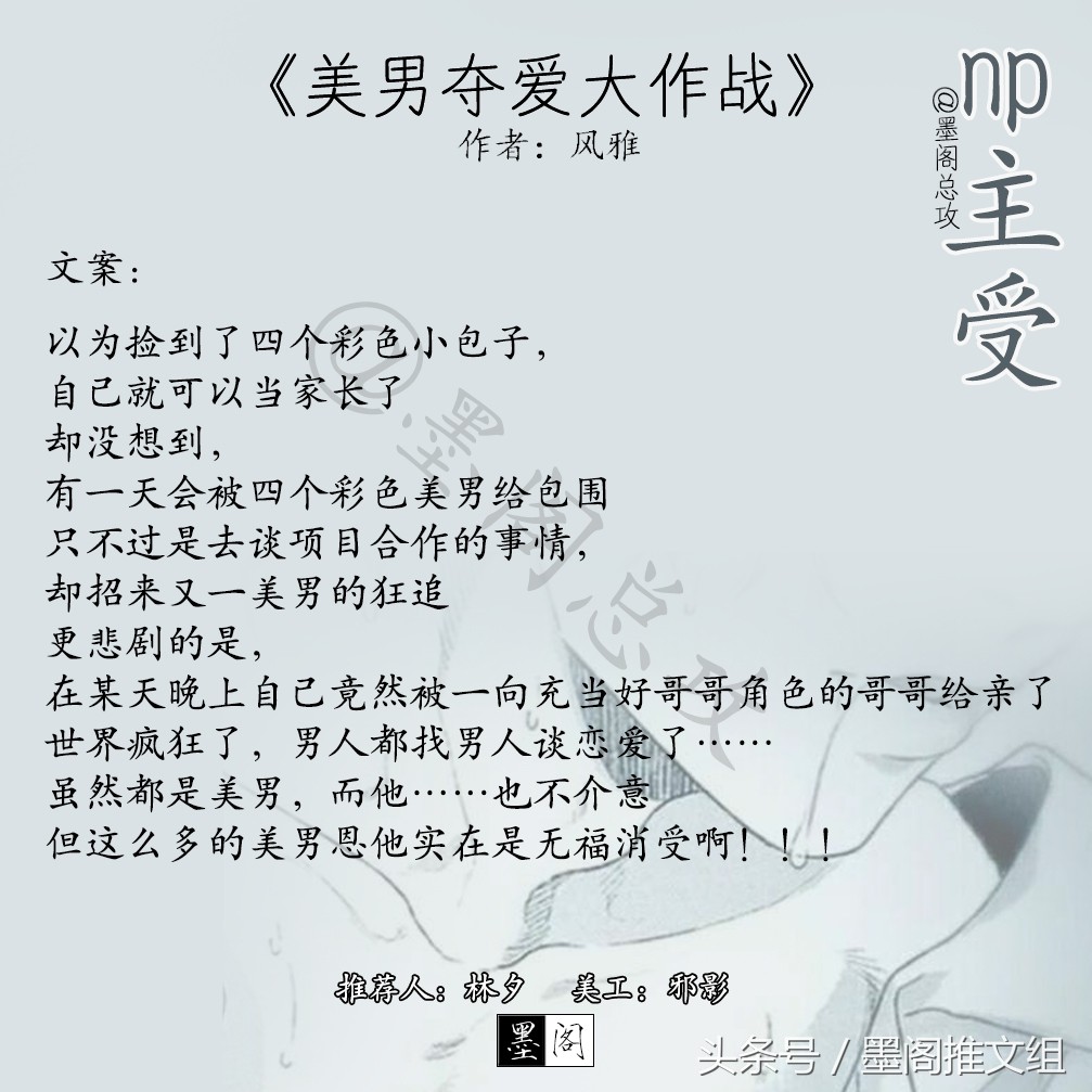 上次小编推了一期np主攻文,然后就有小可爱评论说能不能出一期np主受的,所以今天小可爱们有福喽!喜欢的快来收文喽!不喜欢的也没关系,可以来收图嘛!嘻嘻嘻!