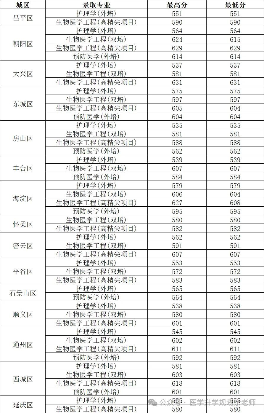 2023年首都医科大学在全国各省份的录取分数线情况如下: