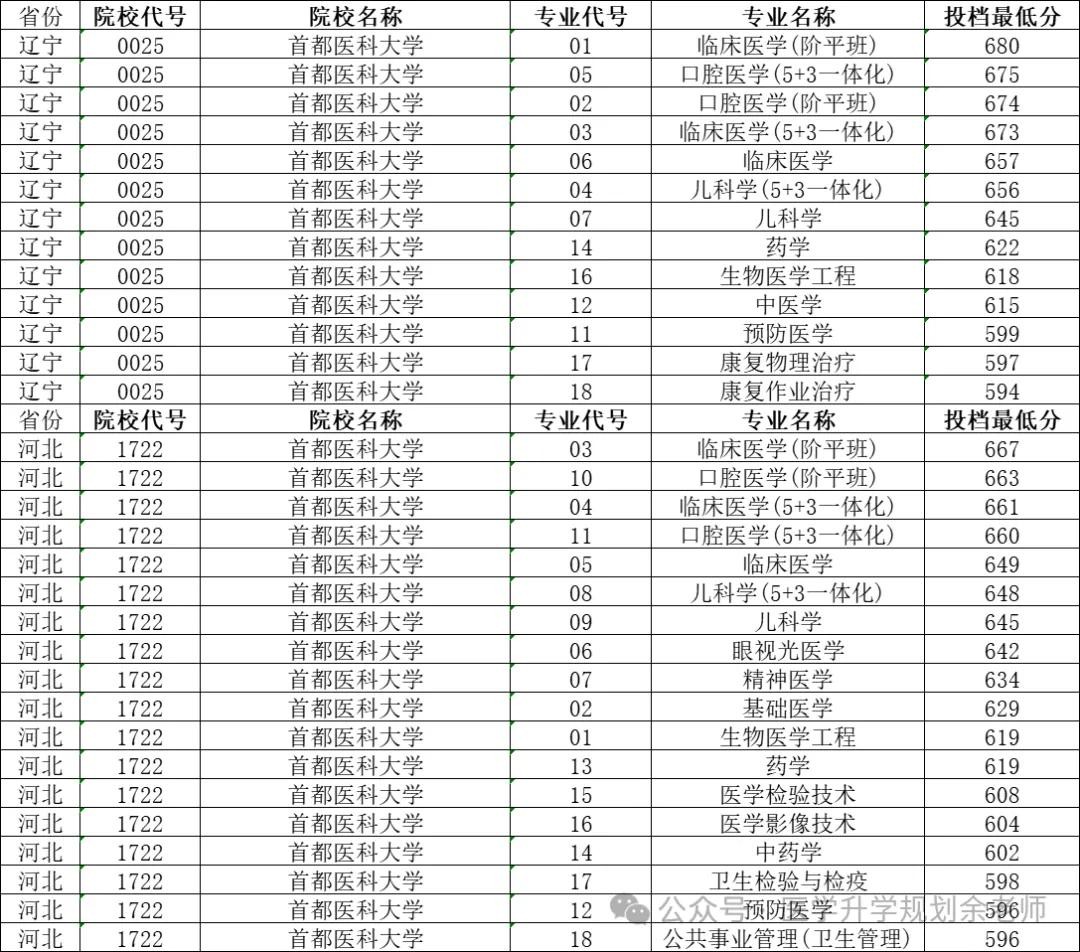 首都医科大学只在全国24个省份招生,哪些省份的录取分数线比较 高呢?