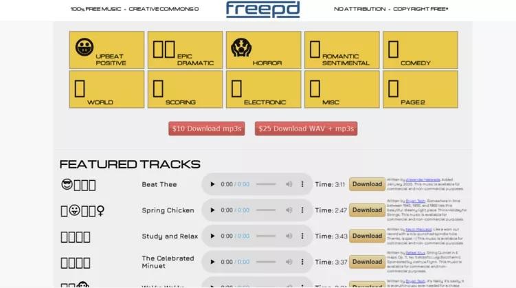 拥有海量免版权的音乐资源网站,提供许多不同类型的音乐资源,免费音乐-免费用于商业用途