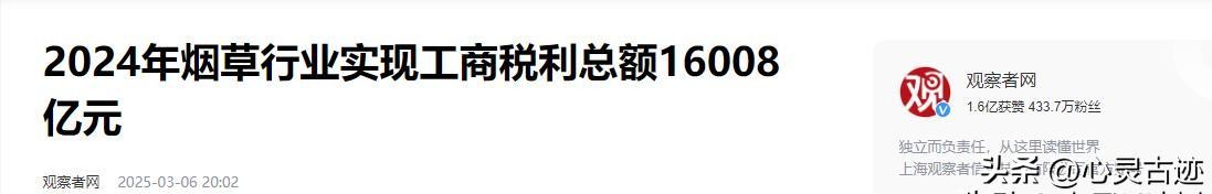 【2】观察者网-《2024年烟草行业实现工商税利总额16008亿元》(2025-03-06)