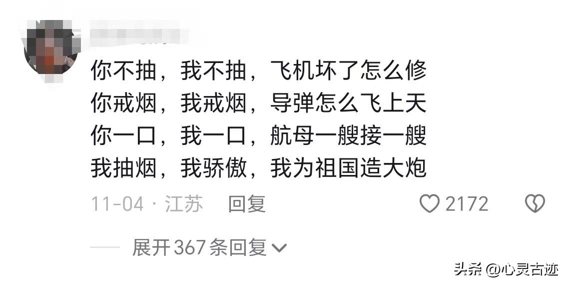 所以不难看出,光这一年我国在烟草收税和军费支出数据上,也是极为平衡的一个存在,这也是为何烟民纷纷自嘲:“现在吸的烟,将来都有可能是武器装备上的一个螺丝钉,亦或者是打到敌人的一个子弹!”