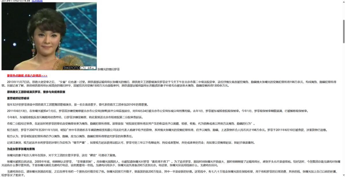 北京时报:张曙光情妇原铁路文工团女高音受审