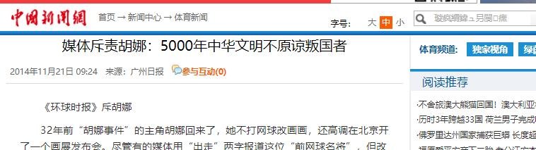 信源|中国新闻网—媒体斥责胡娜:5000年中华文明不原谅叛国者