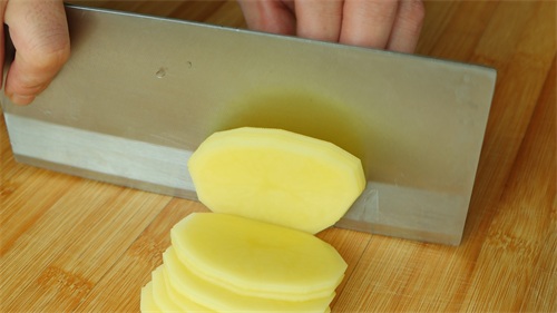 做法简单,下面一起来看一下吧。准备几个土豆,削去外皮,再切成薄片