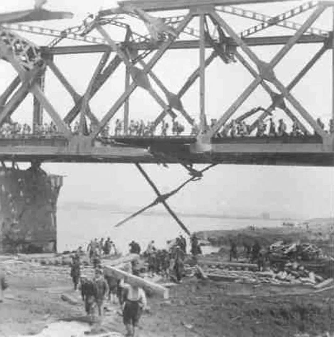 其中一座桥被炸断,成为了现在的鸭绿江断桥,而另一座虽然幸存,但也已是千疮百孔,只能勉强承受20吨以下的车辆。