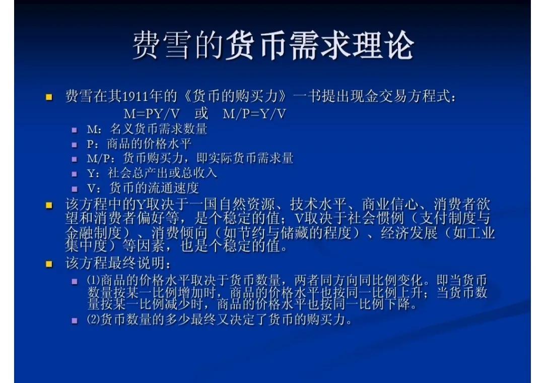 古典学派的货币需求理论:费雪交易方程式和剑桥方程式。