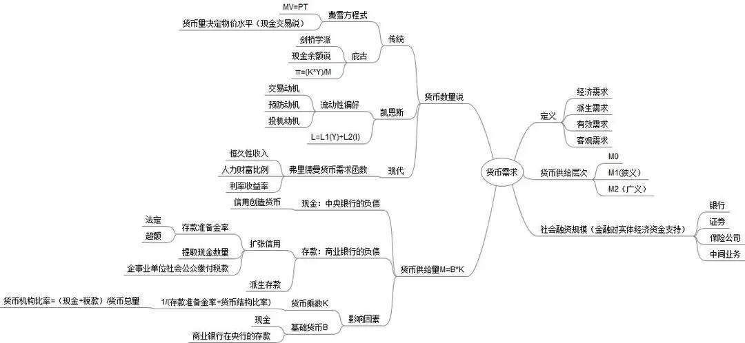 货币需求理论的发展大致经历了一个从宏观视角向微观视角的转变。主要包括马克思的货币需求理论、古典学派的货币需求理论(包括两个方程式,即费雪方程式和剑桥方程式)、凯恩斯学派的货币需求理论、弗里德曼的货币需求理论。