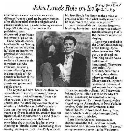 1984年,在黄玉美的协助下,尊龙第一次在好莱坞电影《冰人四万年》中担任主角,饰演一个没有语言能力,只能靠肢体语言来表演的野人。