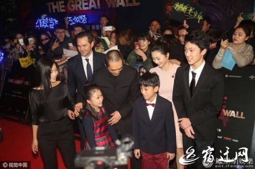 此前,12月6日,电影《长城》举办首映礼红毯及发布会时,张艺谋就携妻子孩子一同出席,被赞颜值爆表。