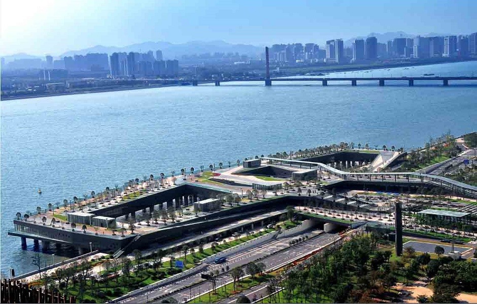 杭州城市阳台位于钱江新城核心区中轴线,共有“一主二副”三个城市阳台,每一个阳台就是一个开放和充满活力的现代城市公园,集休闲,观潮、游憩、放松心情等多种功能为一体。