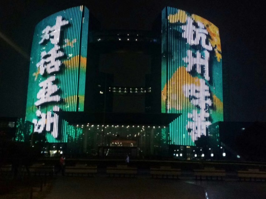主阳台以钱塘江堤岸为底线、外挑江面几十米处,长约322米,大部分架空于江面上,最远处突出江堤约80米。整个阳台分上下两层,光是一层的建筑面积就达2.4万平方米。