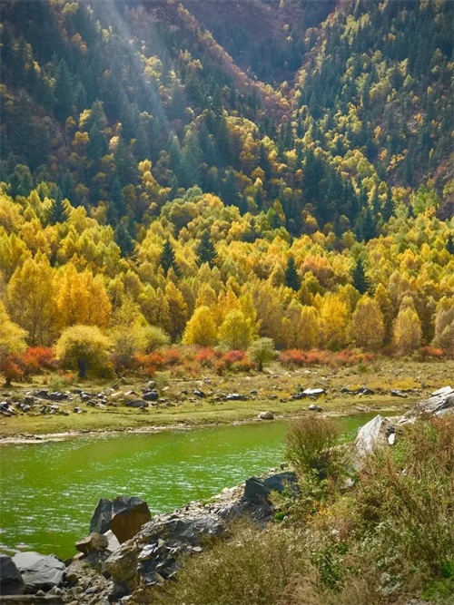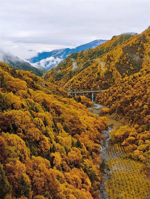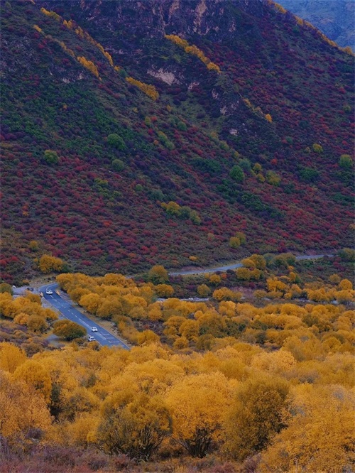 导航设定好以后,注意观察导航路线,选扎哈公路通往群加森林公园的路。一直开,开到有很多经幡的垭口以后,最美的秋景就会出现在你的眼前。