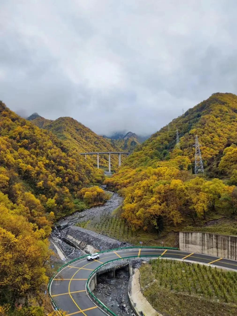 一直跟着导航走,绝美的公路风景在等你,一路上吹着秋风、听着音乐,“班味”都被吹散了!