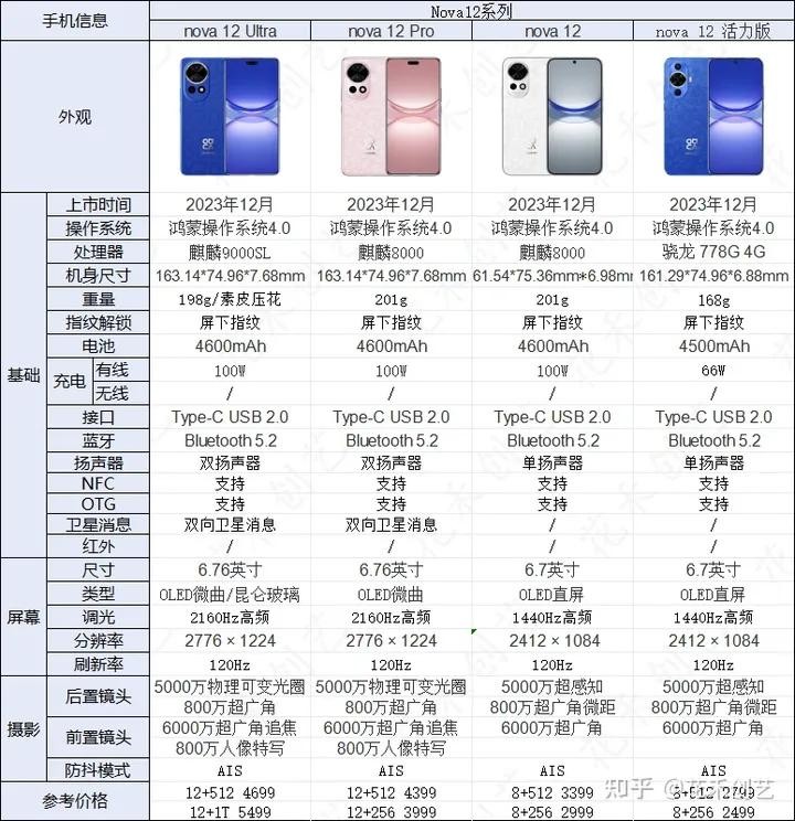 Nova系列是华为的中高端旗舰,在荣耀出走以后更是要扛起中端机型的大旗,如果说Mate系列是家里的大哥P系列是家里的大姐,那么Nova系列妥妥的小公主大家不介意吧。Nova是亲临芯片回归后的第一款麒麟芯片机型,而Nova也一如既往引领时尚的前沿吸引广大用户,Pro和Ultra都采用了素皮压花设计微曲屏,昆仑玻璃,5000W可变光圈摄像头 800W超广角 前置6000W超广角追焦镜头800W人像特写。标准版和活力版则是直屏设计。摄像5000w+800w 前置6000W超广角 ,结合华为算法成像方面没的说 也给喜欢直屏的朋友更多的选择。