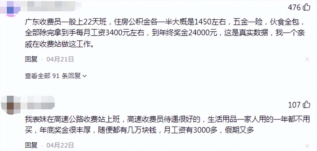 广东收费员一般上22天班,有住房公积金五金一险,伙食全包,这是真实数据。