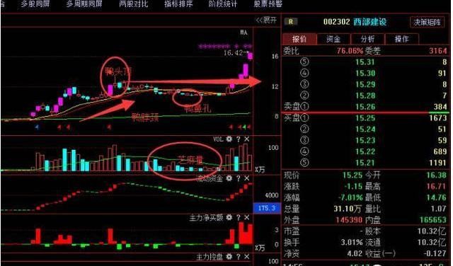 有句话叫“千金难买老鸭头”,这种技术形态往往预示着庄家经过拉高洗盘后第二波行情的到来。老鸭头是庄家建仓、洗盘、拉高等一系列行为所形成的经典形态。