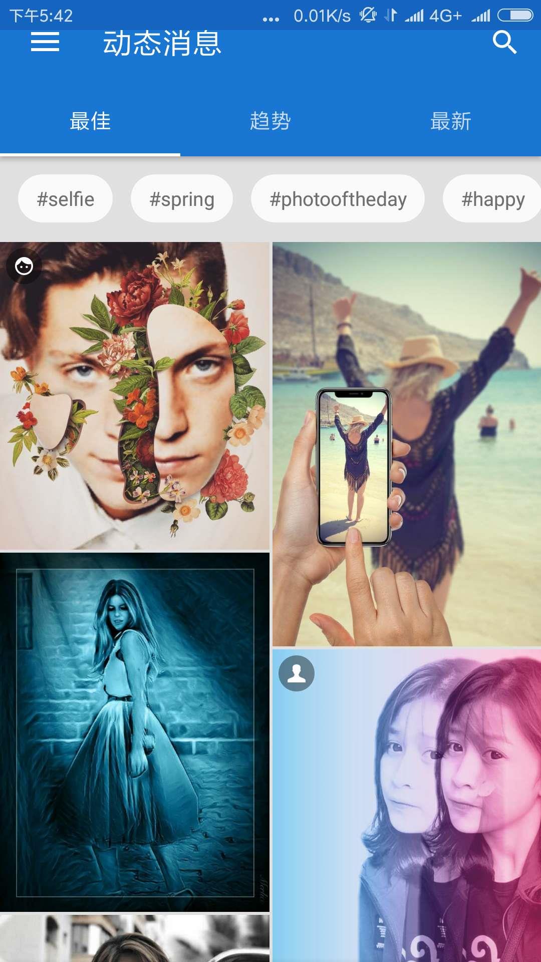 软件简介:一款全功能趣味照片生成器,可以制作多种照片时尚效果,提供多种素材,包括动态效果,让你静止的照片动起来,内含900+照片特效,让你嗨翻天,而且生成的照片不带水印。