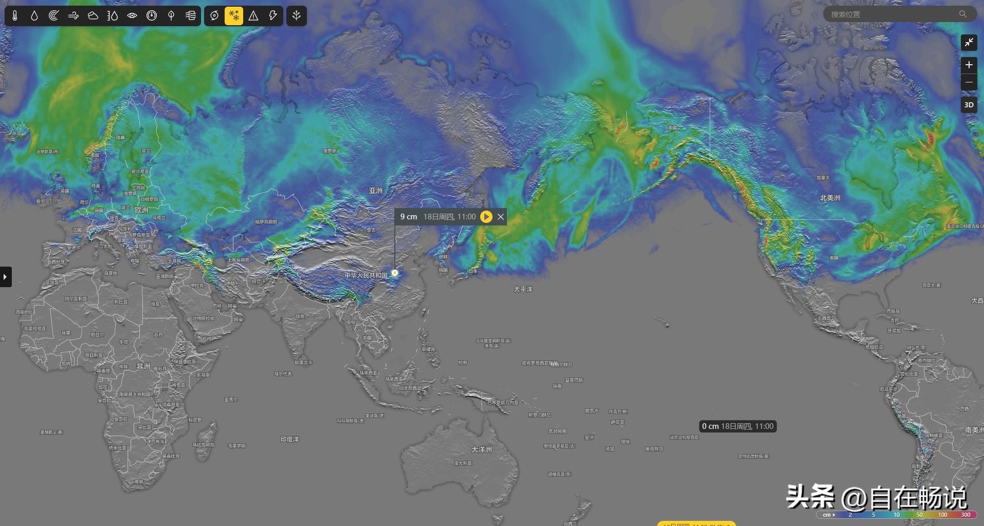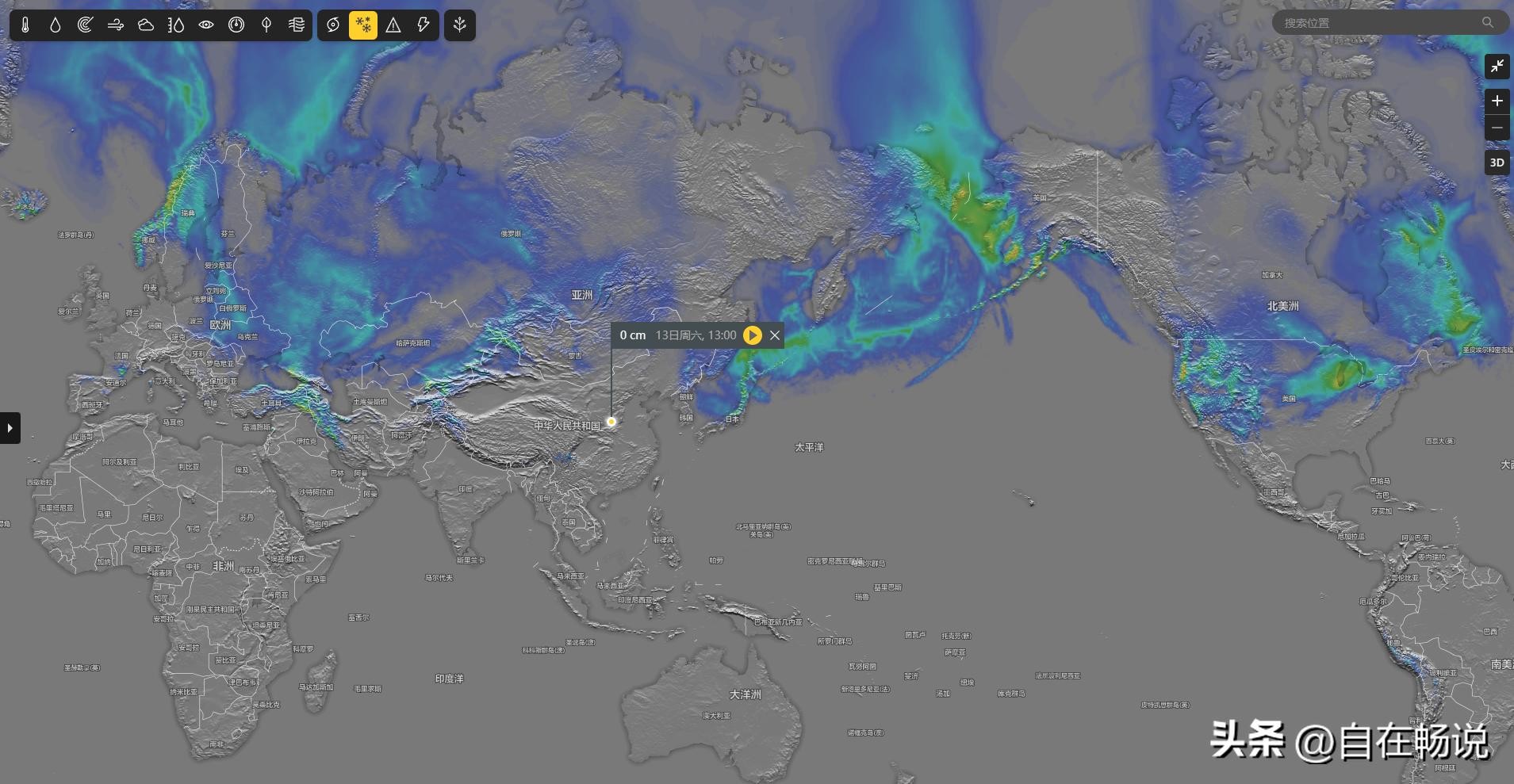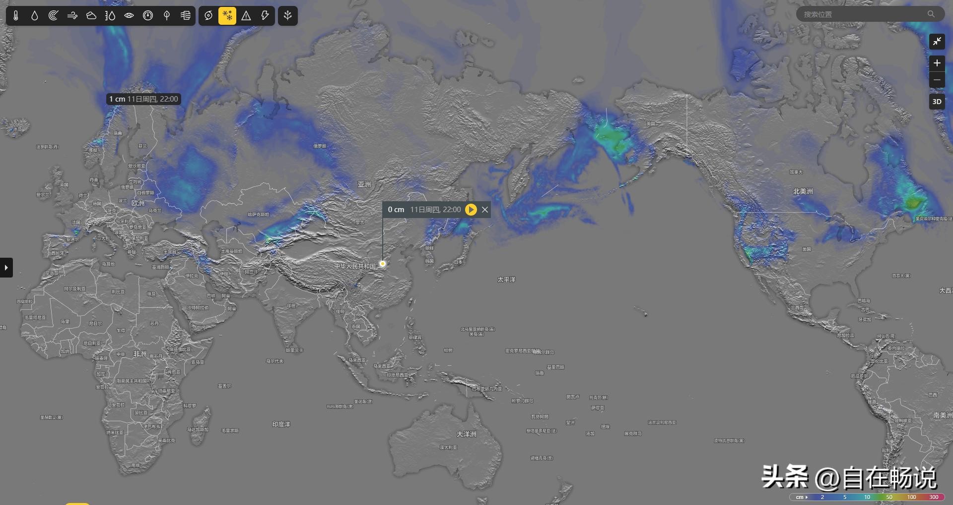 也许大家对于下周北半球下雪面积没有概念,可以看一下此时的降雪地图