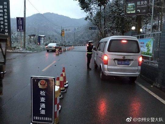 由于持续下雪,鸡冠山不少路面已积上了一层冰雪。1月8日上午,崇州交警大队发布信息称,鸡冠山部分路段已实施临时交通管制,冰雪路面去不了,请大家别去山上添堵了。