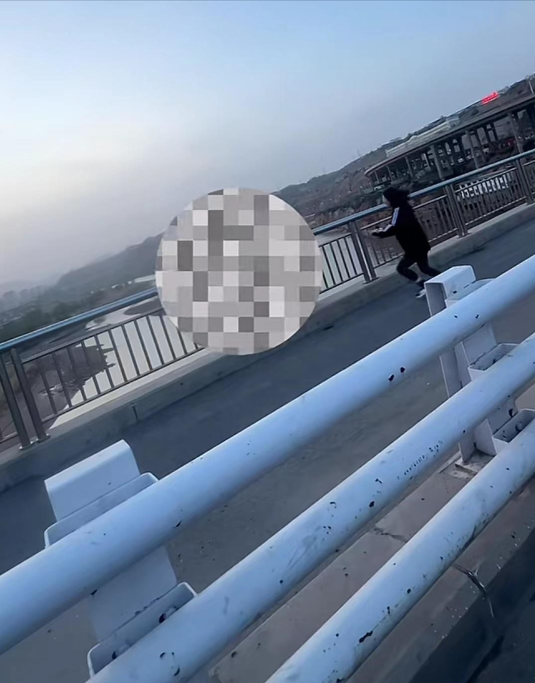 4月15日,甘肃兰州一年轻女孩站在大桥上欲轻生,从大桥上看下去应该是个很深的湖,桥面离湖面应该有几十米深,周围没有住户,应该是一条国道或是乡道。
