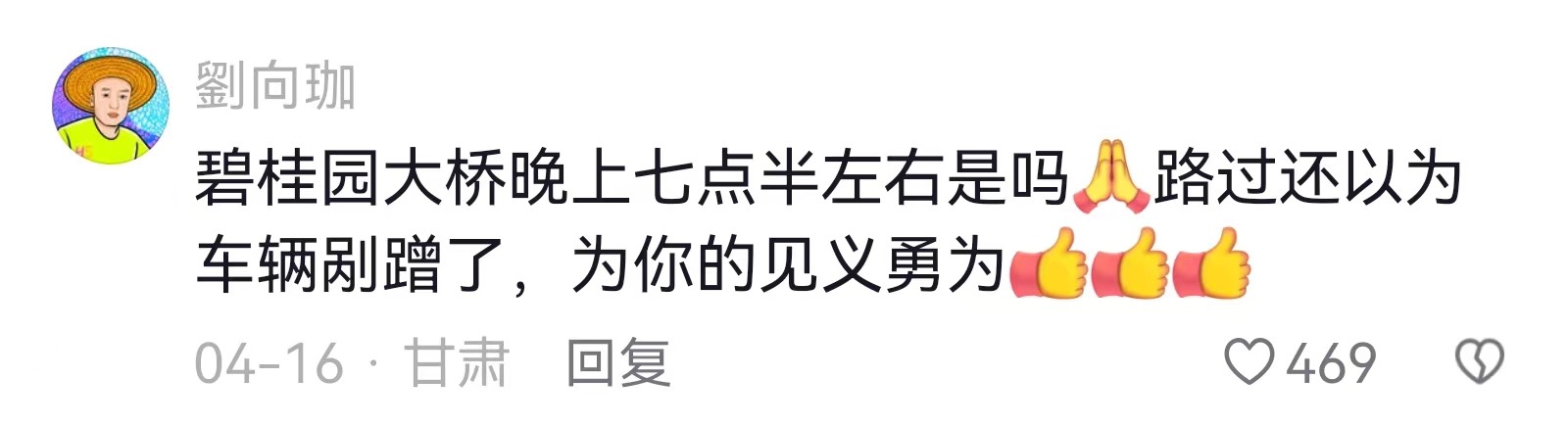 还有网友评论,说当时路过那里,以为是车被剐蹭了,没想到是见义勇为,试想若是当时几个年轻人也是抱这样的心态,觉得女孩是在看风景,那就留下遗憾了。