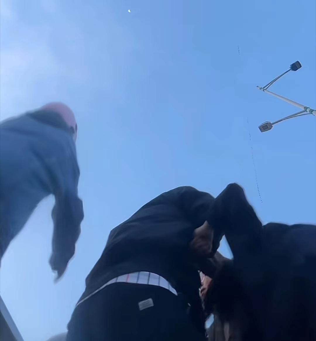 其他几个朋友见状,迅速跑过去帮忙,录视频的作者把手机都扔了,作者的手机和摄像头都被摔坏了,一行人大概有五六个年轻人,一起控制住情绪激动的女孩。