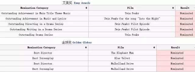 昨天刚说完悲情的男演员们,今天看看我们林奇老爷子。虽然作品几乎都是叫好又卖座,但是似乎一直都和主流大奖没什么缘分。