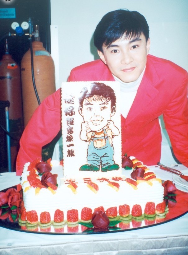 照片中张卫健唇红齿白,好似雕刻美男。