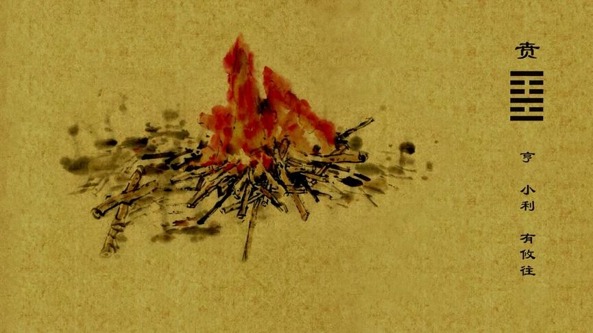 【贲,亨,小利有攸往】贲卦的卦象为文明之象,火的应用给人类的生产、生活带来极大的便利,故曰亨。上卦艮主止,在晚上应用火可以获得小利,不断的将火应用到人类生活的其他方面,有利于提高生产生活,故曰小利有攸往。