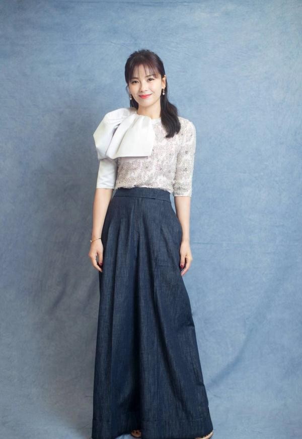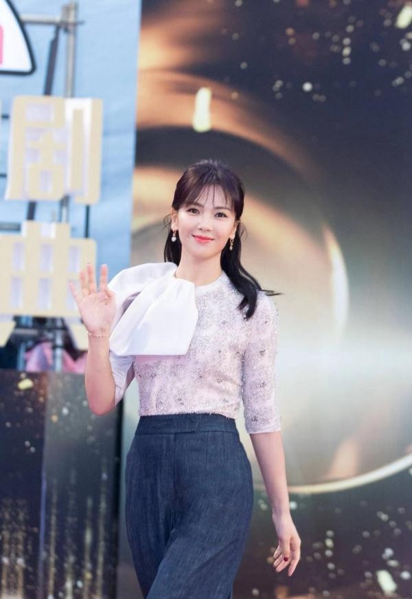 上衣领口有一个大大的蝴蝶结点缀饰品,是这件套头衫的“点睛之笔”,一点儿都不会显得“累赘”。而且还为这件上衣增色了不少,显得不单调,穿在刘涛身上会显得格外出众。中袖款,露出纤细的胳膊显得清爽不少。