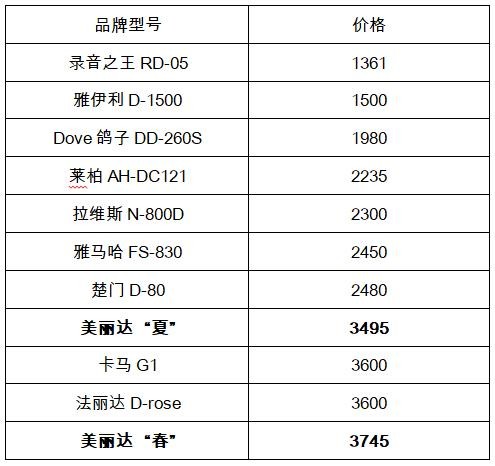 地位决定价格,美丽达也的确是越来越贵了,以“春夏”两支面单琴为例,零售价分别为3745元和3495元,在同为云杉玫瑰木配置的面单琴中,几乎处于顶尖的位置。
