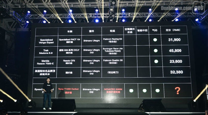 李刚在现场将SPEEDX的三款车都分别和市场上的大牌产品相对比