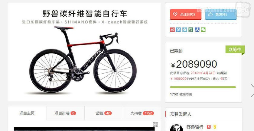 根据京东众筹的数据,野兽骑行发布会结束后才开始的众筹项目,在短短的5个小时里就达到了两百万的众筹金额,是原定目标100万的两倍,共有308位用户购买了整车(有人购买了多辆)。按这个进度,众筹金额破千万也不难,受欢迎程度惊人。根据野兽CEO李刚的说法,众筹的车友可能要在四月下旬或五月份才能拿到车。而销售模式也有所创新,李刚提出线下走量线上挣钱是野兽的销售方式,线下的利润会返还给渠道或者商家,线上的利润空间更大一些。“不过我们挣的都是良心利润”。