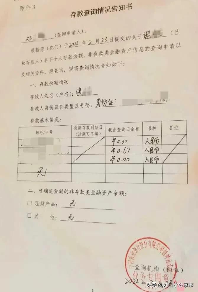2022年2月23日中国农业银行镇坪县支行出具的存款查询信息