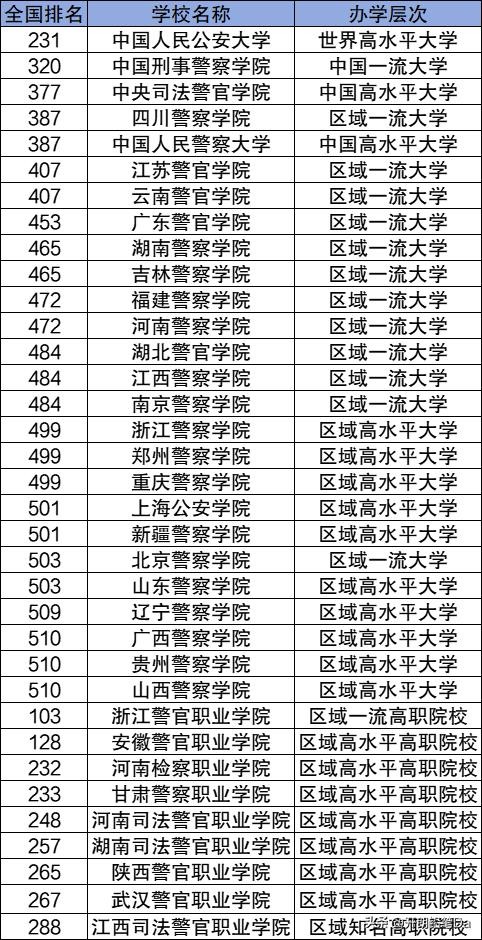 在这些名单中,除了大家耳熟能详的中国人民公安大学之外,警校还包含中央司法警官学院、湖南警察学院、郑州警察学院、北京警察学院、广西警察学院、辽宁警察学院、山东警察学院、福建警察学院、河南警察学院等院校。以下为具体名单。