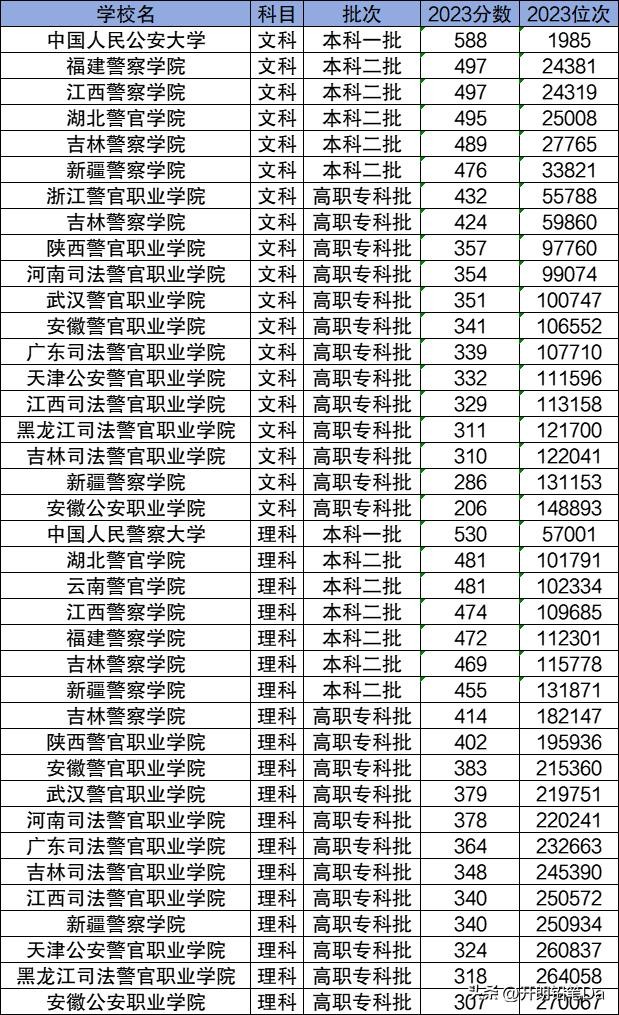 根据2023年数据显示,考警校要307分以上才能被录取。其中录取分数线最低的警校包含安徽公安职业学院、新疆警察学院、广东司法警官职业学院、吉林警察学院、天津公安警官职业学院、陕西警官职业学院、武汉警官职业学院等。